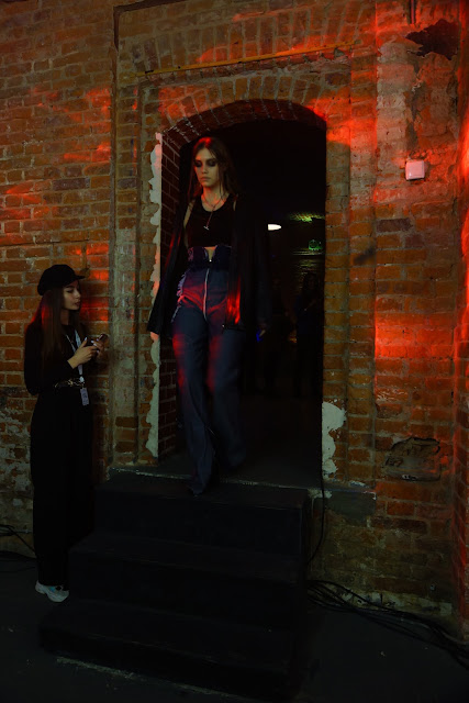 RU: Второй день был более художественным, постановочным. В то же временя этот день был меньше про моду, ведь лишь немногие образы можно было хоть как-то внедрить в повседневность. Однако, на сколько он был интересен! Тематика коллекций была более очевидной и яркой, дизайнеры действительно рассказывали истории. Многие показы проходили необычно, будучи скорее представлениями, чем показом мод. Например, в одном из показов нам была продемонстрирована целая история молодой пары. Одетые в простые черные костюмы, они рассказывали историю взаимоотношений, в то время в параллель к ним были продемонстрированы костюмы органов, которые представляли как они "чувствовали себя" в тот или иной момент инстории. Пришельцы, боги, ночные кошмары, карнавальные маски, вампиры и гости  из будущего наполнили пространство Боярских палат. Мне хотелось бы так же отметить то, что многие костюмы требовали тщательного осмотра и представляли собой огромную работу по деталям на все 360 градусов.